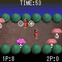 くまちゃんを操作して森の中を走り回るキノコたちを捕まえよう。使用するボタンは上下キーのみの簡単操作。